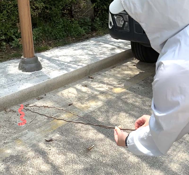 혹시 지렁이가 나뭇가지 위에서 몸부림을 치더라도 당황하지 말고, 그대로 흙 위에 내려주면 됩니다.